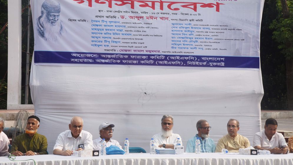ভারতীয় পানি আগ্রাসন নীতি রুখতে ও সর্বত্র প্রতিরোধ গড়ে তোলার লক্ষ্যে গণসমাবেশ হয়েছে। শুক্রবার কেন্দ্রীয় শহীদ মিনারে আন্তর্জাতিক ফারাক্কা কমিটি (আইএফসি) ও বাংলাদেশ ফারাক্কা কমিটি যৌথভাবে এ গণসমাবেশের আয়োজন করে। প্রয়োজনে যুদ্ধ করে, লড়াই করে হলেও ভারতের থেকে পানির ন্যায্য হিস্যা আদায়ের হুঁশিয়ারি দেওয়া হয় গণসমাবেশে।