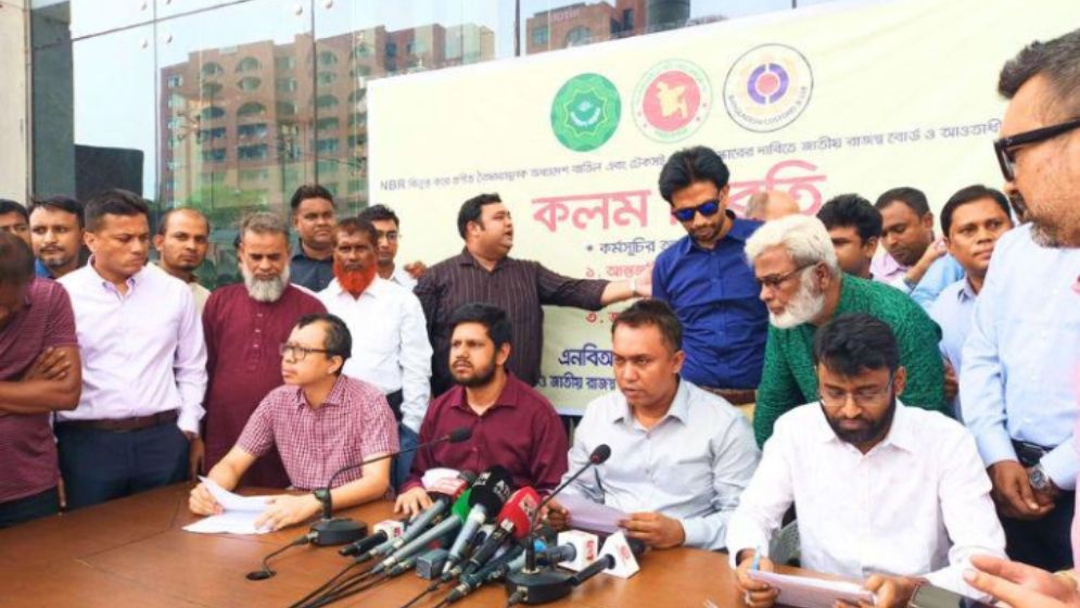 কলমিবিরতিতে বিব্রত সাধারণ আয়কর ও কাস্টমস ক্যাডারের সাধারণ কর্মকর্তা-কর্মচারীরা। সরকারের সঙ্গে আলোচনার মাধ্যমে পরিস্থিতির সুরাহা চান। এনবিআর বিলুপ্তির অধ্যাদেশ বিলুপ্তির দাবিতে আন্দোলনকারীরা চতুর্থ দিনের মতো রোববার ফের কলমবিরতি কর্মসূচি দিয়েছেন। এদিকে এনবিআর চেয়ারম্যান আবদুর রহমান খানের সভাপতিত্বে একটি বৈঠক অনুষ্ঠিত হয়। কর ও কাস্টমস ক্যাডার অ্যাসোসিয়েশন থেকে দুজন করে মোট চার সদস্যবিশিষ্ট একটি কমিটি গঠন করা হয়। তাদের আন্দোলনকারীদের সঙ্গে কথা বলার দায়িত্ব দেওয়া হয়েছে। গেজেটের পক্ষের কর্মকর্তারা বলেন, যারা গেজেট বাতিলের জন্য আন্দোলন করছেন, তারা এনবিআর প্রশাসনসহ সরকারকে অস্থিতিশীল করতে চান।