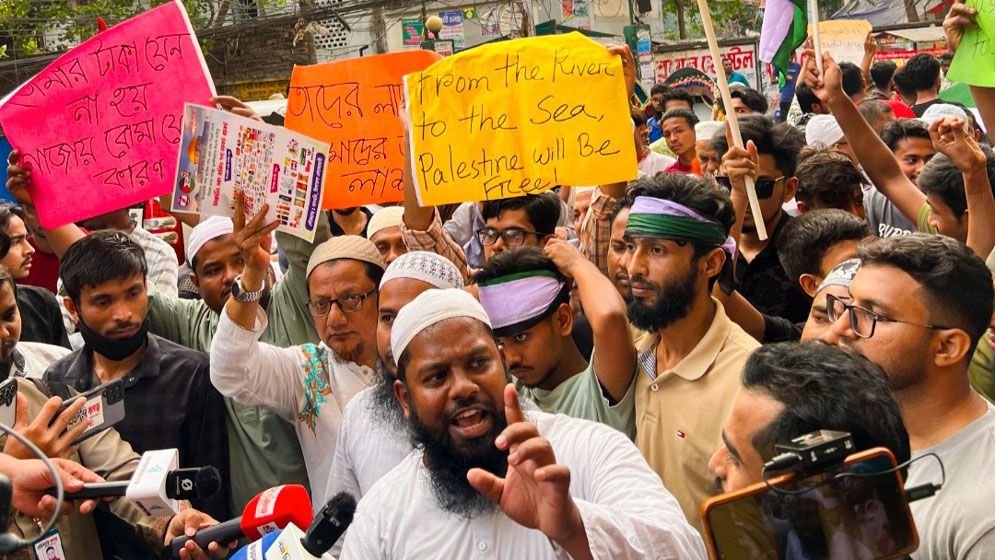 তোমার টাকায় ইসরাইল যেন গাজায় বোমা না ফেলে: বিক্ষোভকারীরা