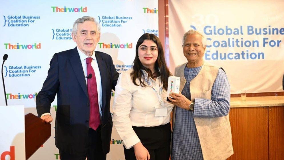 থিয়ারওয়ার্ল্ডের বার্ষিক গ্লোবাল এডুকেশন ডিনারে সম্মানিত হয়েছেন মুহাম্মদ ইউনূস। তাকে মর্যাদাপূর্ণ ‘আনলক বিগ চেঞ্জ অ্যাওয়ার্ড’ প্রদান করা হয়। সামাজিক ও অর্থনৈতিক উন্নয়নে তার অগ্রণী অবদান এবং শিক্ষার প্রতি দীর্ঘদিনের অঙ্গীকারের স্বীকৃতিস্বরূপ এ সম্মাননা দেওয়া হয়েছে। অনুষ্ঠানটি যৌথভাবে সঞ্চালনা করেন জাতিসংঘের বৈশ্বিক শিক্ষা বিষয়ক বিশেষ দূত ও যুক্তরাজ্যের সাবেক প্রধানমন্ত্রী গর্ডন ব্রাউন এবং থিয়ারওয়ার্ল্ডের চেয়ারম্যান সারা ব্রাউন। ড. ইউনূসের পাশাপাশি জাতিসংঘের শরণার্থী বিষয়ক হাইকমিশনার ফিলিপো গ্রান্ডিকেও সম্মাননা জানানো হয়। এসময় গর্ডন ব্রাউন বলেন, ‘গত ৫০ বছরে কোনো বেসরকারি খাতের প্রকল্প মানুষের দারিদ্র্য দূরীকরণে গ্রামীণ ব্যাংকের মতো অবদান রাখতে পারেনি।’ পুরস্কার গ্রহণকালে ড. ইউনূস বলেন, ‘খাদ্য, স্বাস্থ্যসেবা ও শিক্ষার মতো ঋণও একটি মৌলিক মানবাধিকার। আর্থিক ব্যবস্থার দরজা খুলে দিলে কেউ আর দরিদ্র থাকবে না। আমি ক্ষুদ্রঋণের সঙ্গে শিক্ষাকেও যুক্ত করেছি, যাতে নারীরা তাদের সন্তানদের স্কুলে পাঠাতে পারে। শিশুদের ছোটবেলা থেকেই উদ্যোক্তা হওয়ার শিক্ষা দেওয়া উচিত।