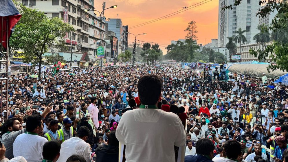 নাহিদ ইসলাম বলেছেন, আওয়ামী লীগকে নিষিদ্ধ করতে আমাদের রাস্তায় নামতে হচ্ছে, এটা আমাদের সামষ্টিক ব্যর্থতা। নাহিদ বলেন, বিচার চলাকালীন পর্যন্ত আওয়ামী লীগের সাংগঠনিক এবং রাজনৈতিক কর্মকাণ্ড আইন করে নিষিদ্ধ ঘোষণা করতে হবে। তিনি বলেন, আমরা জুলাই ঘোষণাপত্রের কথা বলেছিলাম; জুলাইকে সাংবিধানিক স্বীকৃতি দেওয়ার কথা বলেছিলাম; ষড়যন্ত্রের কারণে ঘোষণাপত্র এখনো আসছে না। অবিলম্বে এ জুলাই ঘোষণাপত্র দিতে হবে। জুলাই সনদে সুস্পষ্টভাবে আওয়ামী লীগ নিষিদ্ধের কথাটি থাকতে হবে। আরও বলেন, আমরা একটি নতুন সংবিধানের কথা বলছি- সেই নতুন সংবিধানের জন্য আগামী নির্বাচন, আইনসভা এবং গণপরিষদ নির্বাচন একত্রে করতে হবে। দ্রুত সময়ের মধ্যে শহিদ পরিবার এবং আহত যোদ্ধাদের দায়িত্ব নিতে হবে। এ সরকার বিচার নিশ্চিত করতে ব্যর্থ হলে আমরা বসে থাকব না, জনতার আদালতে আওয়ামী লীগ এবং ফ্যাসিজমের বিচার নিশ্চিত করা হবে। আমরা একটি নতুন রাষ্ট্র ব্যবস্থা কায়েম করব এবং একটি মানবিক মর্যাদার ভিত্তিতে একটি নতুন সমাজ প্রতিষ্ঠা করব।