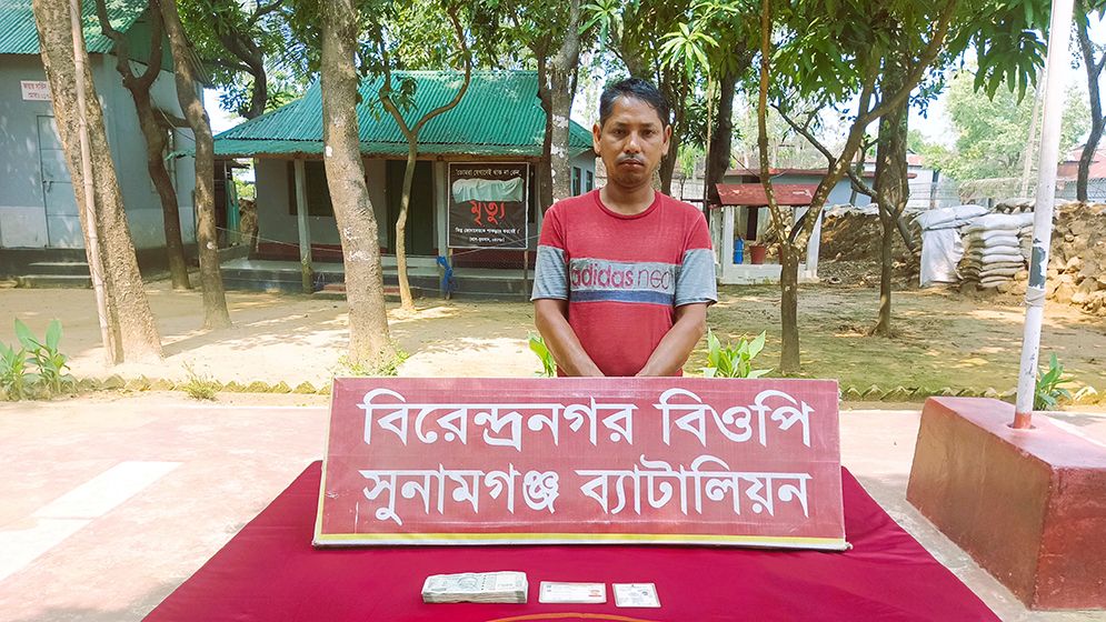 রফিক নামে এক হুন্ডি ব্যবসায়ীর কাছ থেকে ভারতীয় এনআইডি ও ড্রাইভিং লাইসেন্স জব্দ করেছে বিজিবি। আটক রফিক তাহিরপুরের টেকেরঘাটের বড়ছড়ার মৃত রুসমত আলীর ছেলে। সুনামগঞ্জের তাহিরপুরের বীরেন্দ্রনগর বিওপির বিজিবি টহল দল ভারত থেকে বাংলাদেশে ফেরার পথে সোমবার সকালে তাকে বাংলাদেশ অভ্যন্তরে আটক করেন। তার হেফাজত থেকে ৩৪ হাজার ভারতীয় রুপি, ভারতীয় নির্বাচন কমিশন কর্তৃক দেওয়া এনআইডি কার্ড, ভারতীয় একটি ড্রাইভিং লাইসেন্স জব্দ করে বিজিবি টহল দল।