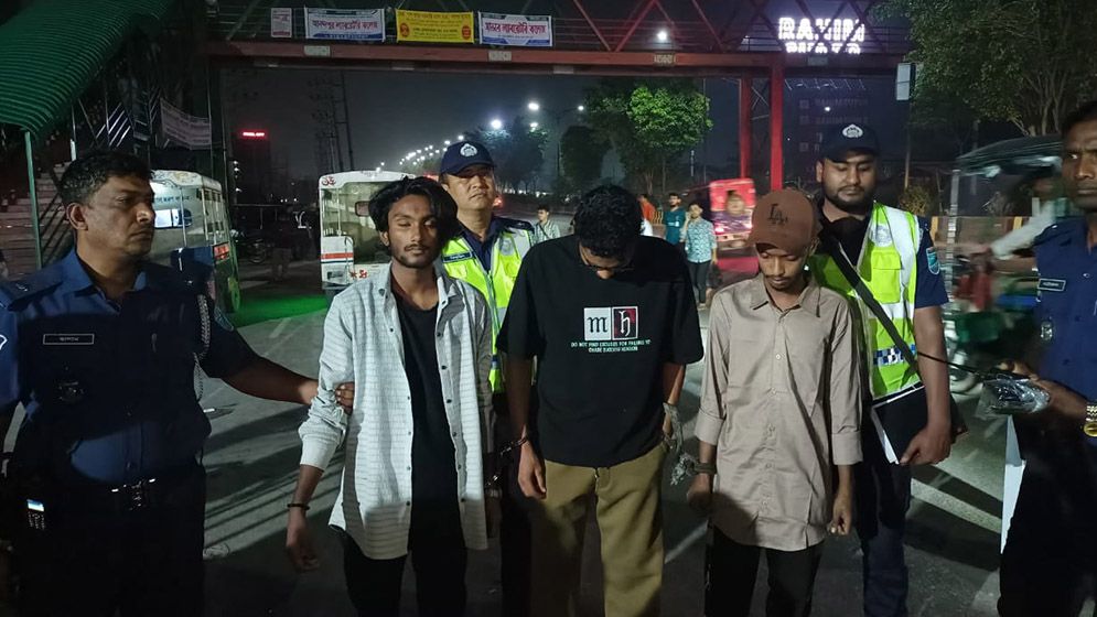 চলন্ত বাসে পুলিশের তল্লাশি, ছুরিসহ আটক ৩ তরুণ