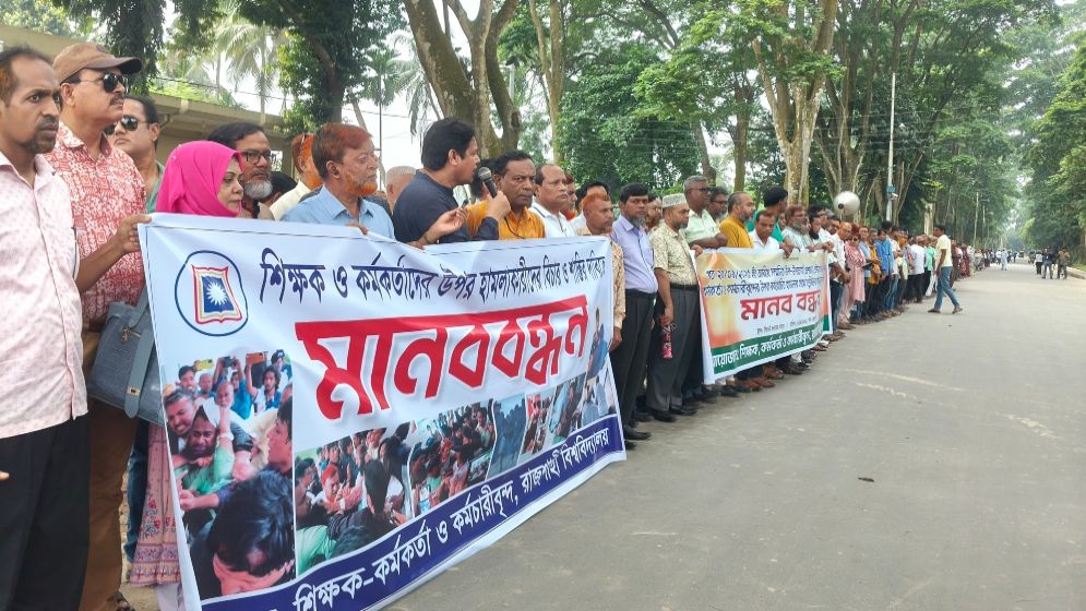 রাবিতে চলছে ‘কমপ্লিট শাটডাউন’, শিক্ষক ও কর্মকর্তা-কর্মচারীদের মানববন্ধন