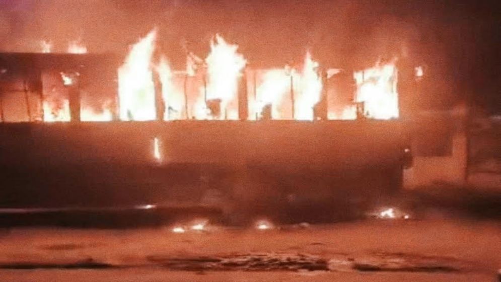 শেখ ফজিলাতুন্নেসা কলেজের সামনে বাসে আগুন