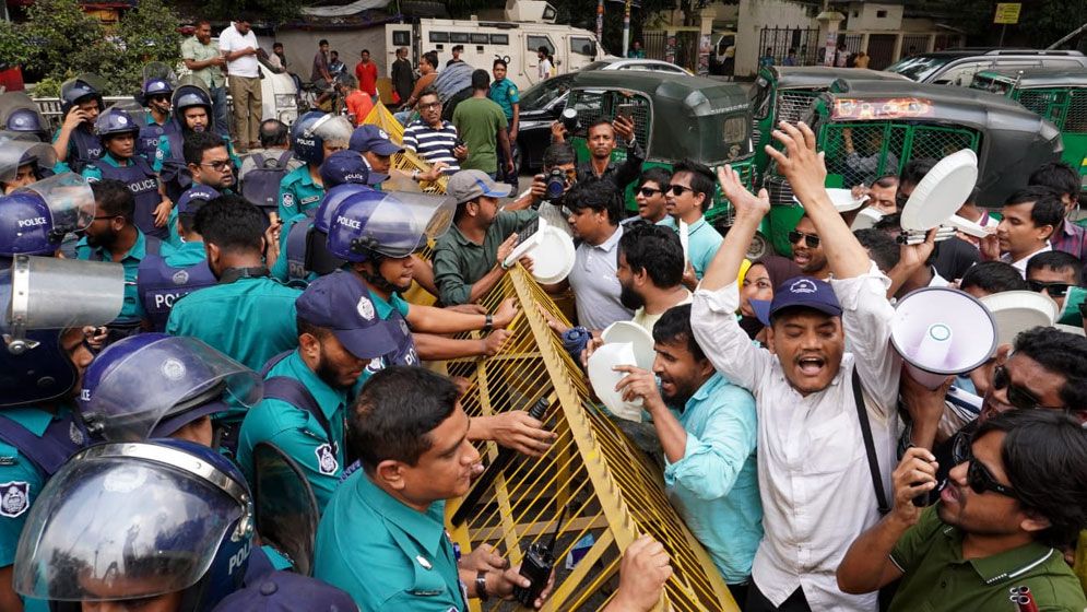 ন্যায্য নিয়োগের দাবিতে যমুনার উদ্দেশে পদযাত্রা করতে গেলে শাহবাগে পুলিশ আটকায় প্রতিবন্ধী চাকরিপ্রত্যাশীদের