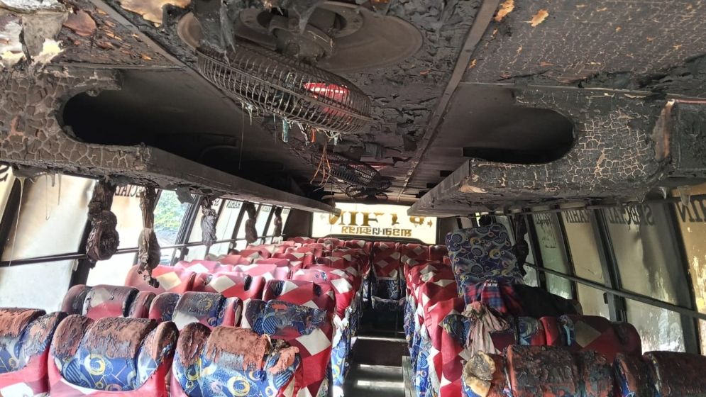 পার্কিং করা বাসে আগুন, অল্পের জন্য রক্ষা বস্তিবাসী