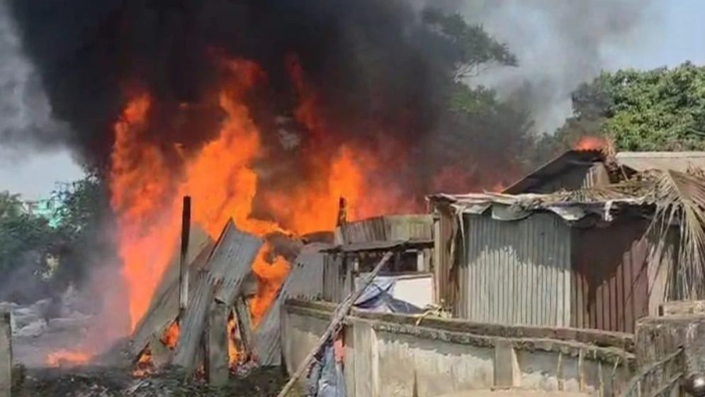 ভূমিকম্পে সোনারগাঁয়ে প্লাস্টিক গোডাউনে আগুন