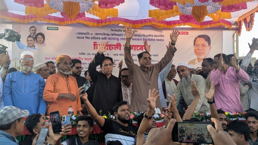 নোয়াখালী-৫ (কোম্পানীগঞ্জ-কবিরহাট ও সদরের একাংশ) আসনে ধানের শীষ প্রতীকের প্রার্থী জেলা বিএনপি নেতা মো. ফখরুল ইসলাম বলেছেন, আপনারা ধানের শীষে ভোট দিলে তারেক রহমান প্রধানমন্ত্রী হবেন। আর তিনি প্রধানমন্ত্রী হলে নদীভাঙন কবলিত নোয়াখালীকে সিঙ্গাপুরে রূপান্ত