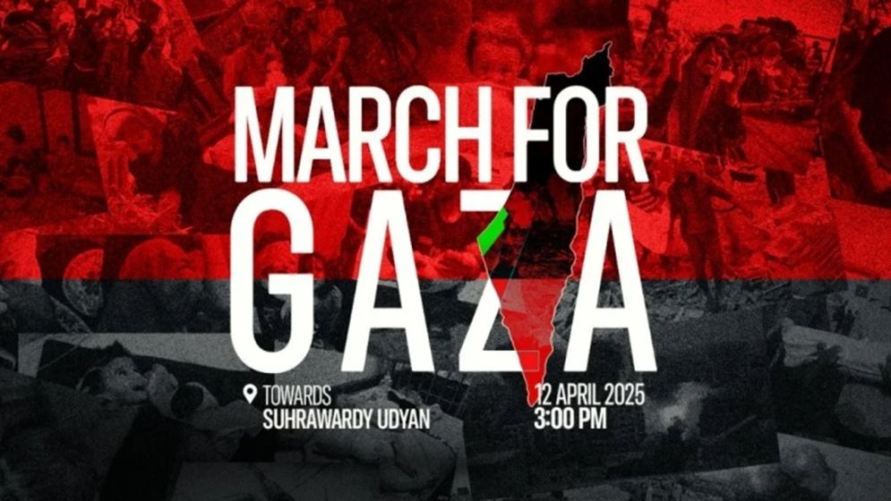 ফিলিস্তিনের অবরুদ্ধ গাজা ভূখণ্ডে প্রতিদিনই বাড়ছে ইসরাইলি হামলার তীব্রতা। এতে দীর্ঘ থেকে দীর্ঘতর হচ্ছে মৃত্যুর মিছিল। এ অবস্থার প্রতিবাদে ও ফিলিস্তিনিদের প্রতি সংহতি জানিয়ে আজ ‘মার্চ ফর গাজা’ শিরোনামে জমায়েতের ডাক দিয়েছে ‘প্যালেস্টাইন সলিডারিটি মুভমেন্ট বাংলাদেশ’ নামে একটি প্ল্যাটফর্ম।