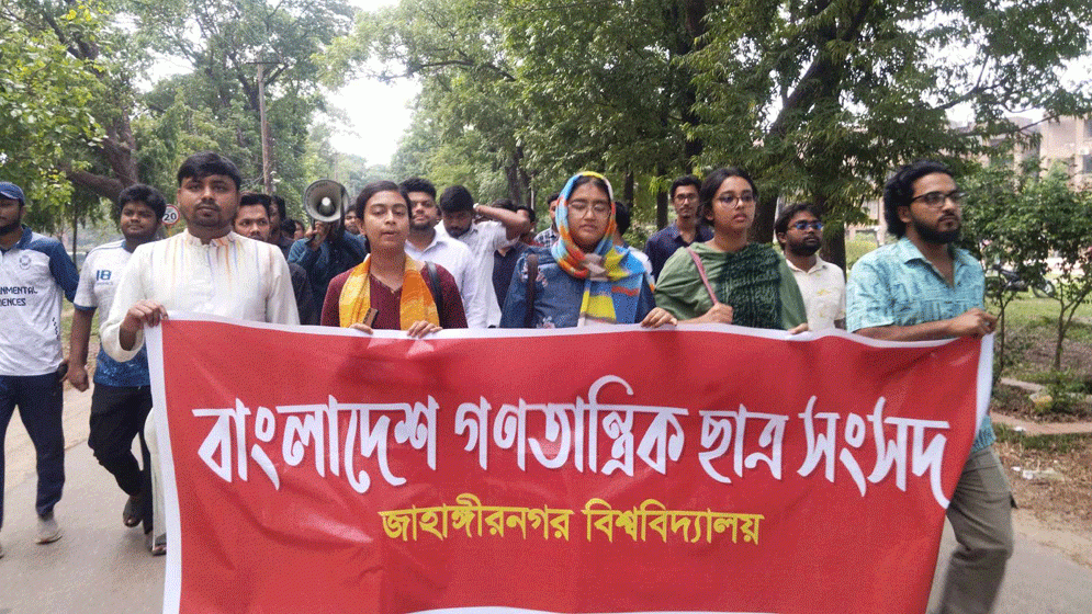 জাহাঙ্গীরনগর বিশ্ববিদ্যালয়ে (জাবি) দ্রুততম সময়ে জুলাই হামলাকারীদের বিচার প্রক্রিয়া সম্পন্ন ও ৩০ এপ্রিলের মধ্যে জাকসুর তফশিল ঘোষণার দাবিতে বিক্ষোভ মিছিল করেছে বাংলাদেশ গণতান্ত্রিক ছাত্র সংসদ, জাহাঙ্গীরনগর বিশ্ববিদ্যালয় শাখা।