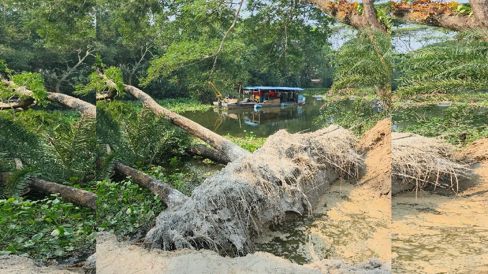 গোপালগঞ্জের কোটালীপাড়া উপজেলায় ড্রেজার দিয়ে খাল খননের ফলে পাশের সড়ক ভেঙে খালের মধ্যে পড়ে গেছে, এতে স্থানীয়দের মধ্যে চরম দুর্ভোগ দেখা দিয়েছে। এশিয়ান উন্নয়ন ব্যাংকের অর্থায়নে পানি উন্নয়ন বোর্ডের বাস্তবায়নে গোপালগঞ্জ-পয়সারহাট খাল খনন প্রকল্পের কাজ চুক্তি অনুযায়ী পানি সেচ দিয়ে করার কথা থাকলেও ঠিকাদারি প্রতিষ্ঠান আতাউর রহমান খান লিমিটেড ড্রেজার ব্যবহার করে কাজ শুরু করে। এতে মাঝবাড়ি ও বংকুরা গ্রামের সংযোগ সড়ক ধসে পড়ে এবং শিক্ষার্থীদের চলাচলে ঝুঁকি তৈরি হয়। এলাকাবাসী অভিযোগ করেছেন, ঠিকাদার ও সংশ্লিষ্ট প্রকৌশলীরা চুক্তিভঙ্গ করে লোকদেখানো কাজের মাধ্যমে সরকারি অর্থ আত্মসাৎ করছে। পানি উন্নয়ন বোর্ড ও উপজেলা প্রশাসন ঘটনাস্থল পরিদর্শন করে দ্রুত মেরামতের আশ্বাস দিয়েছে। এই ঘটনায় স্থানীয়দের মধ্যে ক্ষোভ ও অব্যবস্থাপনা নিয়ে সমালোচনা বাড়ছে।